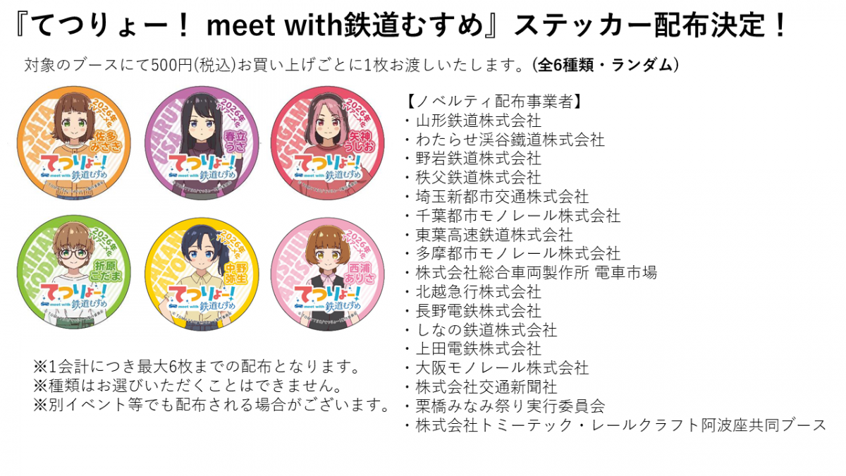 今回のイベントでは『てつりょー! meet with鉄道むすめ』ステッカー配布が決定いたしました。