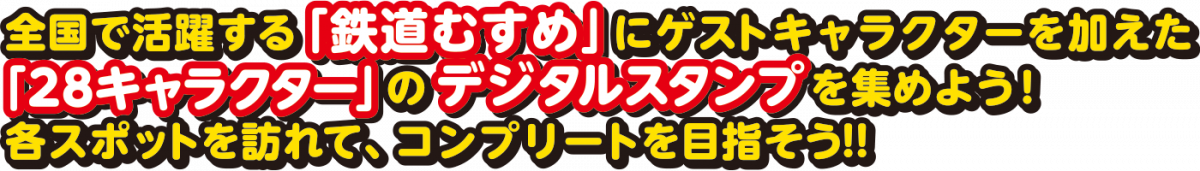 全国で活躍する「鉄道むすめ」にゲストキャラクターを加えた「28キャラクター」のスタンプを集めよう!